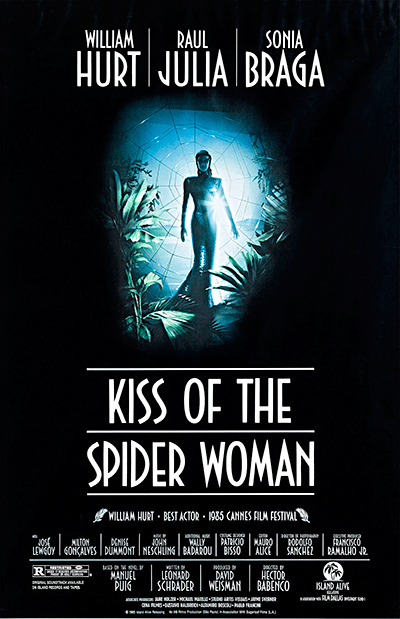 No Brasil, sob a sangrenta ditadura militar que nos governou por mais de 20 anos e que ainda hoje segue elegendo presidentes, o filme nos prende no cárcere, onde um prisioneiro político, Valentín (Raul Julia), divide a cela com um homossexual, Luís Molina (William Hurt), condenado por corrupção de menor. Entre quatro paredes, Valentín se revela a Luís, que nos revela as motivações de suas ações encarceradas. Entre sessões de tortura e sofrimento, Luís descreve a Valentín as cenas de seus filmes favoritos, nos quais Sonia Braga faz o papel de uma mulher sedutora ou de uma mulher angelical ou de uma aranha-mulher: em todas elas, ela prende suas presas com beijos vitais e políticos. Se Hector Babenco é um estrangeiro em qualquer país do mundo, a ficção é a teia-tela que reflete uma janela para a liberdade em qualquer realidade encarcerada. “O Beijo da Mulher Aranha” é um convite para um sonho escondido no fundo de um pesadelo que insiste em não terminar.