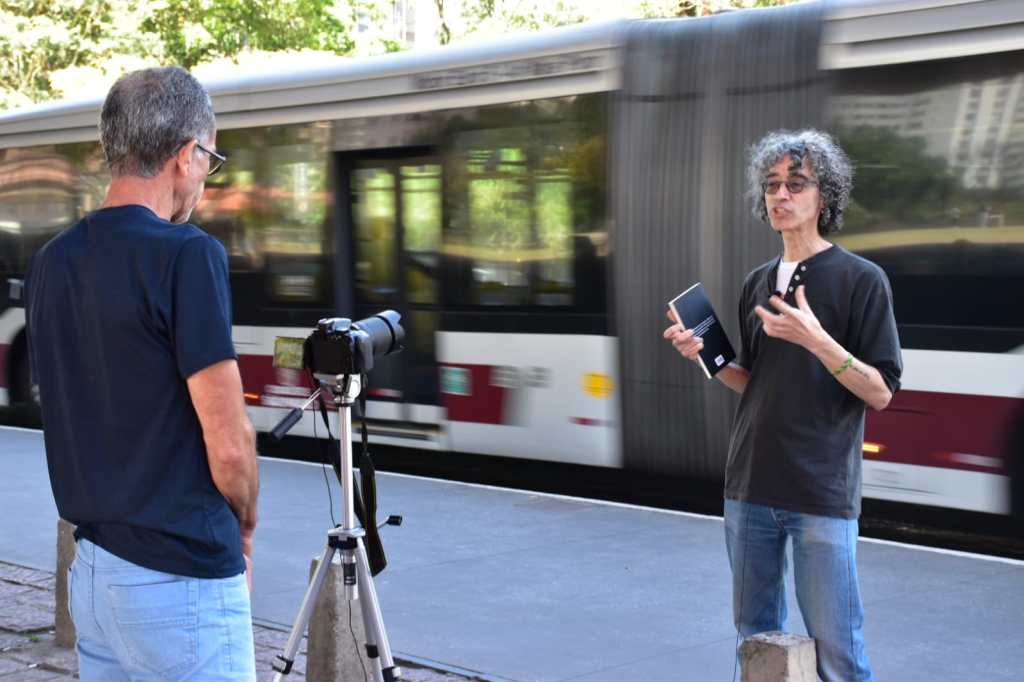 First recording session of the documentary about Anderson´s novel “Avenida Paulista, 22”. Photographer José Roberto Marques recorded the work of director João Gilberto de Oliveira, collecting testimonials from readers. The film will soon be released on YouTube. September 8th, 2023