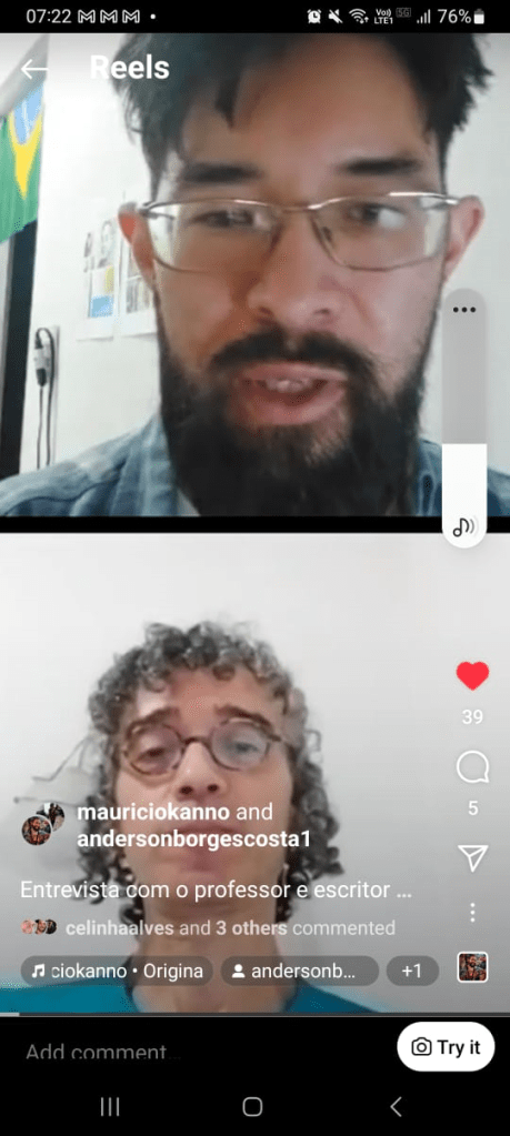 Interviewed by journalist Mauricio Kanno on novel “Professoras” – November 3rd, 2023